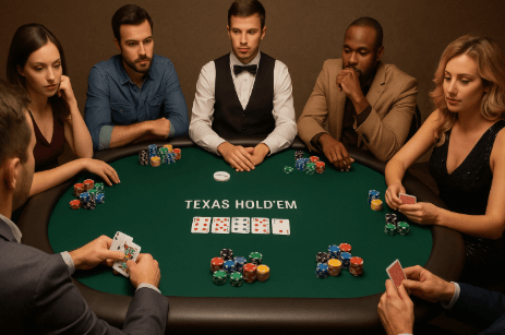 玩家可在每个阶段根据情况选择 弃牌(Fold)、跟注(Call) 或 加注(Raise),最终以手中两张底牌结合五张公共牌,组成最强的五张牌型来赢得底池。